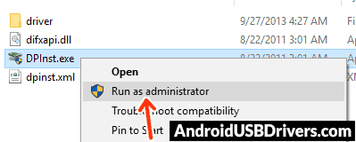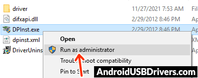 - Right-click on the DPInst.exe file and select Run as administrator.