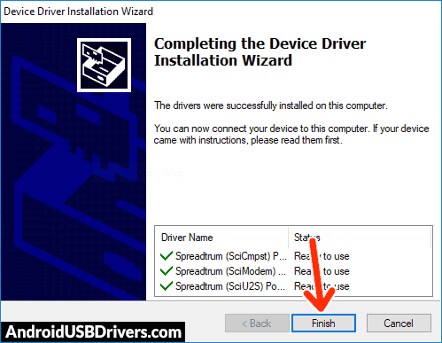 - Click on Finish when the Device Driver Installation Wizard is successful.