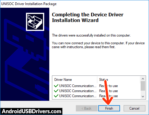 - When the driver installation process is completed, click on Finish.