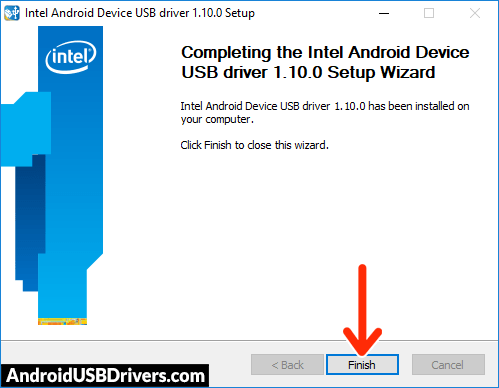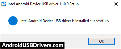 - Once the Intel Drivers are installed, a window should pop-up saying "Intel Android Device USB driver is installed successfully". Click on OK.
