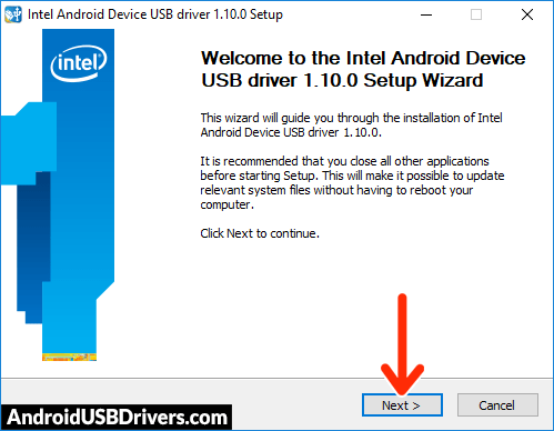 - Intel Android Device USB driver setup window should open, click on Next to continue.