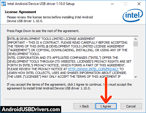- After extracting the driver package, you'll get Intel Android Driver setup (IntelAndroidDrvSetup1.10.0.exe) file.