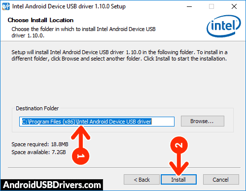 - Now, choose the destination folder to install Intel USB Driver and click on Install.