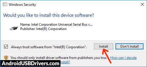 - Click on Install if a Windows Security window asking "Would you like to install this device software?" pops-up.