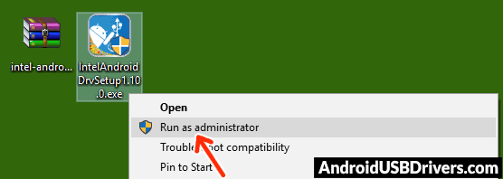 - Right-click on the Intel Android USB Driver setup file and select Run as administrator.