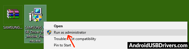 - Right-click on the SAMSUNG_USB_Driver_for_Mobile_Phones.exe file and select Run as administrator.
