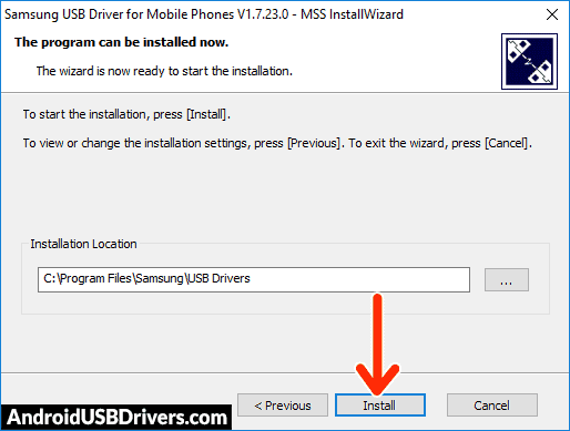 - In the next screen, you'll be asked to select the Installation Location. We recommend installing Samsung Mobile Drivers to the default location (C:\Program Files\SAMSUNG\USB Drivers).