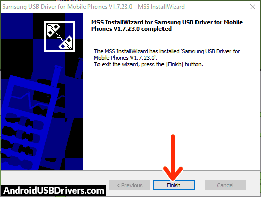 - Once the Samsung Phone Drivers installation process is completed, click on Finish.